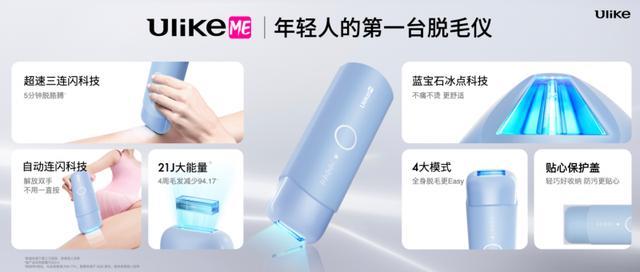 值得一提的是,本次产品发布会还推出了"年轻人的第一台脱毛仪"——Ulike ME,该产品拥有21J大能量,能让毛发脱得更干净;1秒3闪的超快速度,能让脱毛更高效;自动连闪科技,解放双手,能让脱毛更轻松;同样的真蓝宝石冰点科技,不痛不烫,能让脱毛更舒适,是所有年轻消费者人生第一台脱毛仪首选。