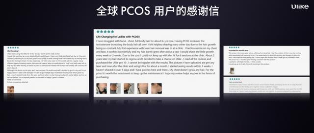 为了帮助她们解决毛发困扰,Ulike特别设立了“同行计划”,对PCOS患者和机构提供各项帮助,获得众多患者好评,至今收到来自全球几十个国家患者的感谢信,感谢Ulike脱毛仪帮助他们重塑自信。