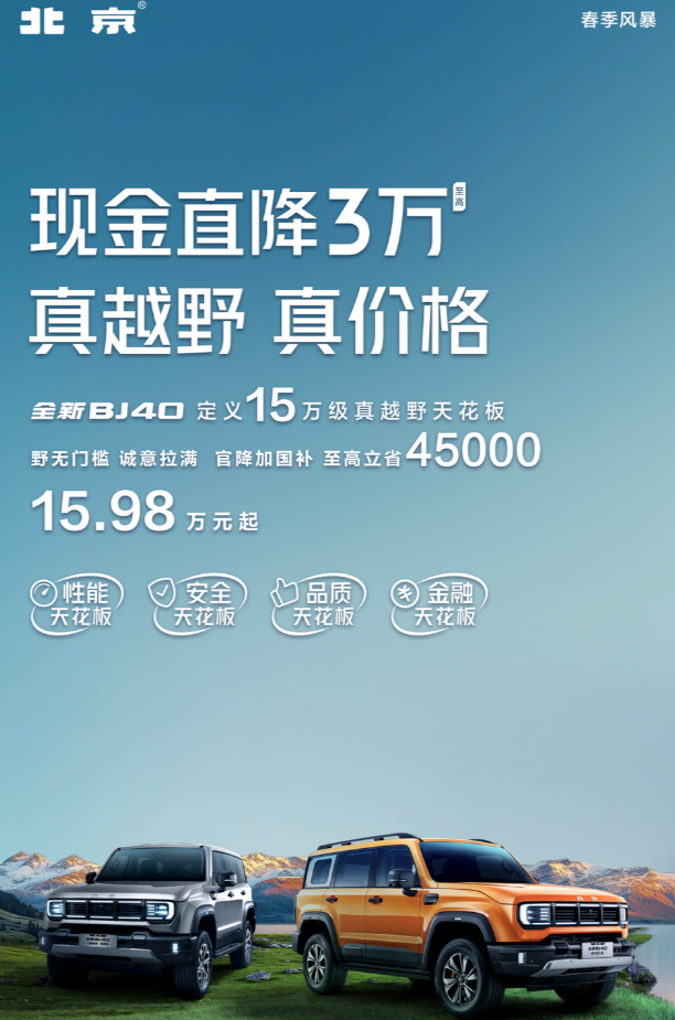 现在国内硬派越野车消费市场也是格外热闹,即便是这种定位偏向于小众化的领域大连股票配资,如今价格上也越来越卷。近日北京bj40拿出了更多的诚意,在原来指导价的基础上明显下探,特别是2024款城市猎人版2.0T自动四驱先锋型优惠之后价格门槛已经下探到15.98万,虽然是相对入门的版本,但这款车的配置水平已经比较高了。