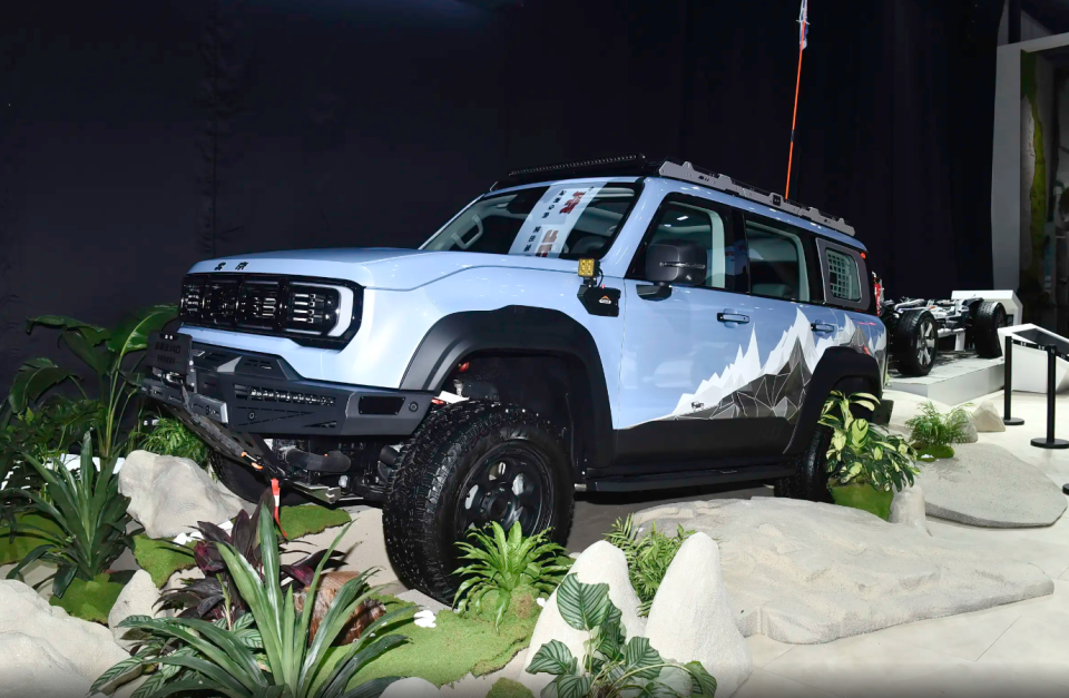 当然北京bj40这款车整体架构还是标准的硬派底盘,是非常纯正的非承载式架构,采用前双横臂独立悬架,搭配的是后整体桥悬架,后续改装的空间也比较大。而且在硬派越野圈子里对比的话,这款车整个驾驶座舱确实有内置防滚架,越野安全性是有保障的。