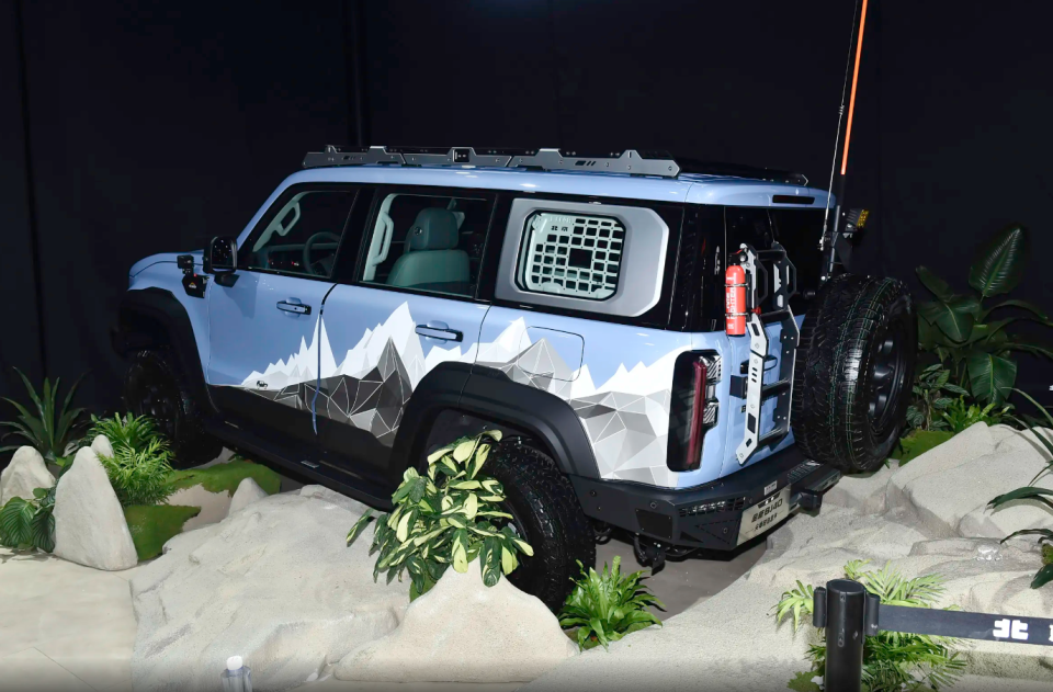 外观造型设计相比上一代产品,现在整体方盒子效果更到位了,尤其整个车身侧面有棱有角,整个车顶都相当平坦,车尾的整个后尾箱门也是直来直去,这样其实空间利用率很大。当然车头和车尾还是保持了硬派越野的辨识度,包括有五孔进气中网以及尾部全尺寸越野小书包备胎,关键后尾箱还可以分段式打开,比如只打开下半部分就能轻松收放一些小件物品。