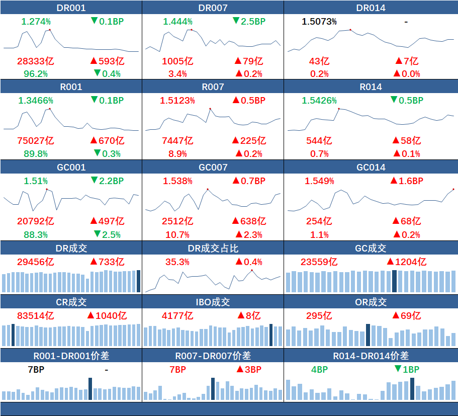 货币市场资金面均衡偏松。今日成交82473亿元。DR001加权1.27%,较前日基本持平,DR007加权1.44%,较前日下行3BP。