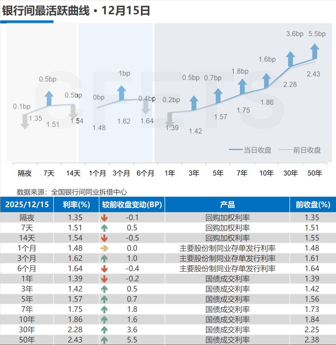债券市场交易有所减少,现券市场成交1.54万亿元,较前减少2.99%;10年期活跃国债和国开债分别成交在1.858%和1.939%,较前上行1.55BP和上行2.25BP。债券借贷市场成交2451.56亿元,较前增加1.57%。