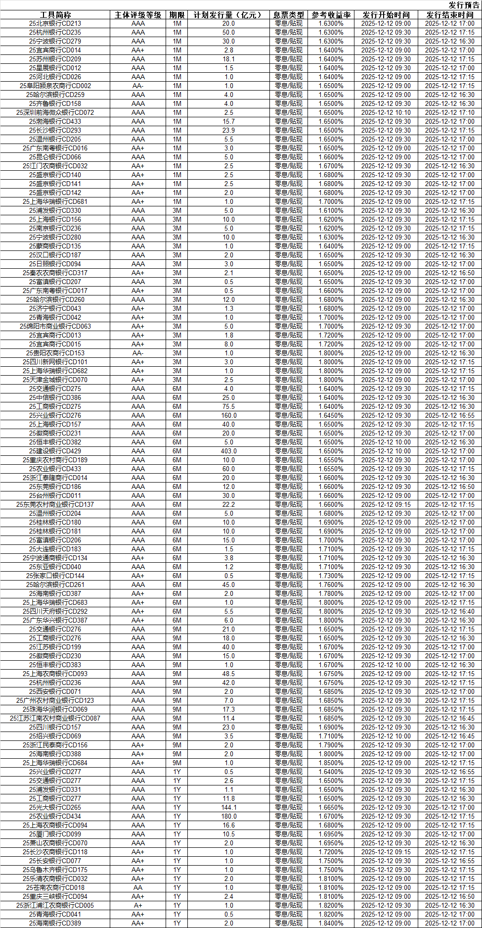 同业存单发行107只,发行量1791.4亿元,较前日减少11.5亿元。